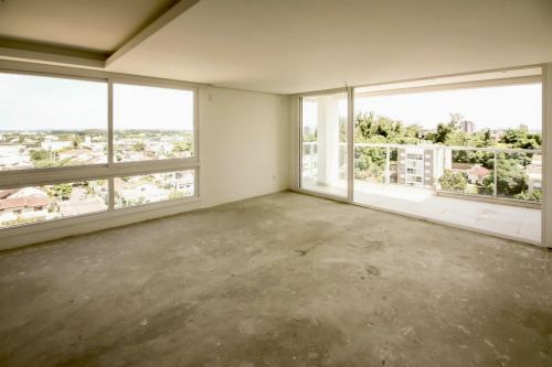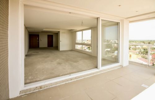 Salas amplamente envidraçadas, permitindo muita iluminação e ventilação natural, além de vistas panorâmicas e sacada ampla.
