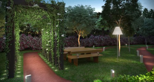 Hall de Entrada; Espaço Kids; Sala de Fitness e Spa Center. Jardins amplos com Estar, Pergolados, Espelhos D’Água, Redários,Túneis Verdes, Lounges Aquecidos e Trilha para Caminhada com 396 m.