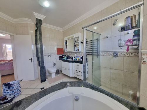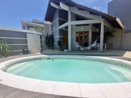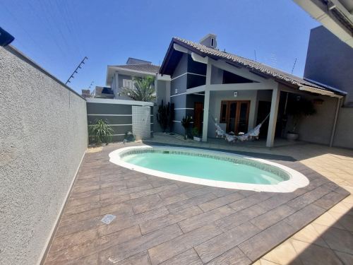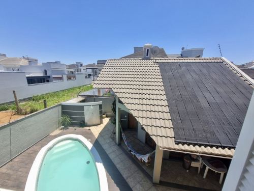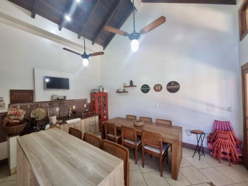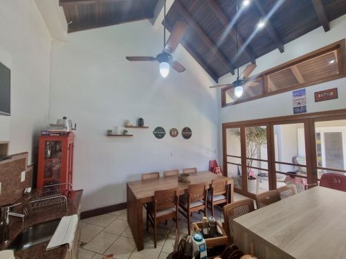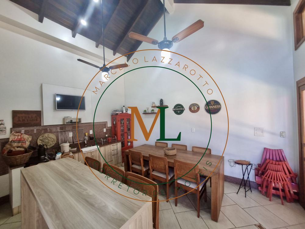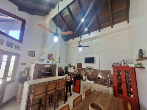 Tem Lavanderia, piscina, salão de festas com parrilla e fogão a lenha. A piscina conta com aquecimento solar. A casa possui placas fotovoltaicas para geração de energia. Também conta com 3 banheiros e um lavabo. Os chuveiros e torneiras com aquecimento à gás.