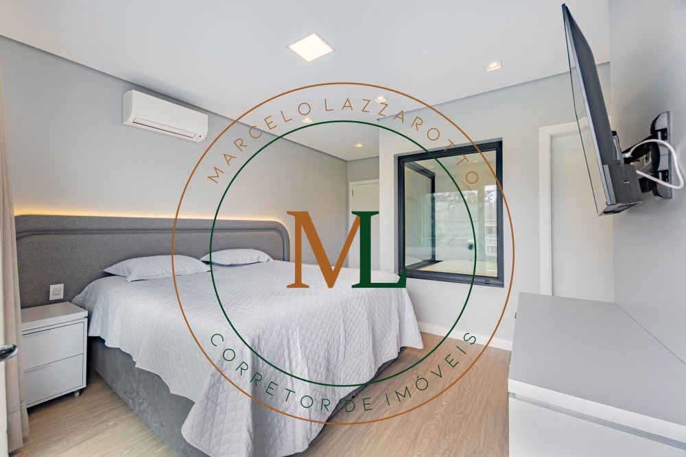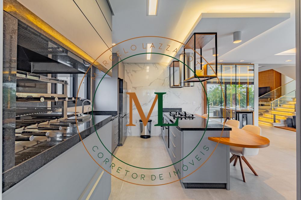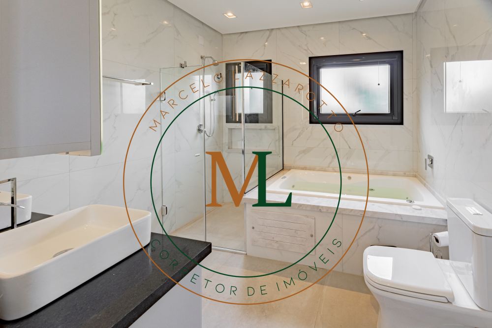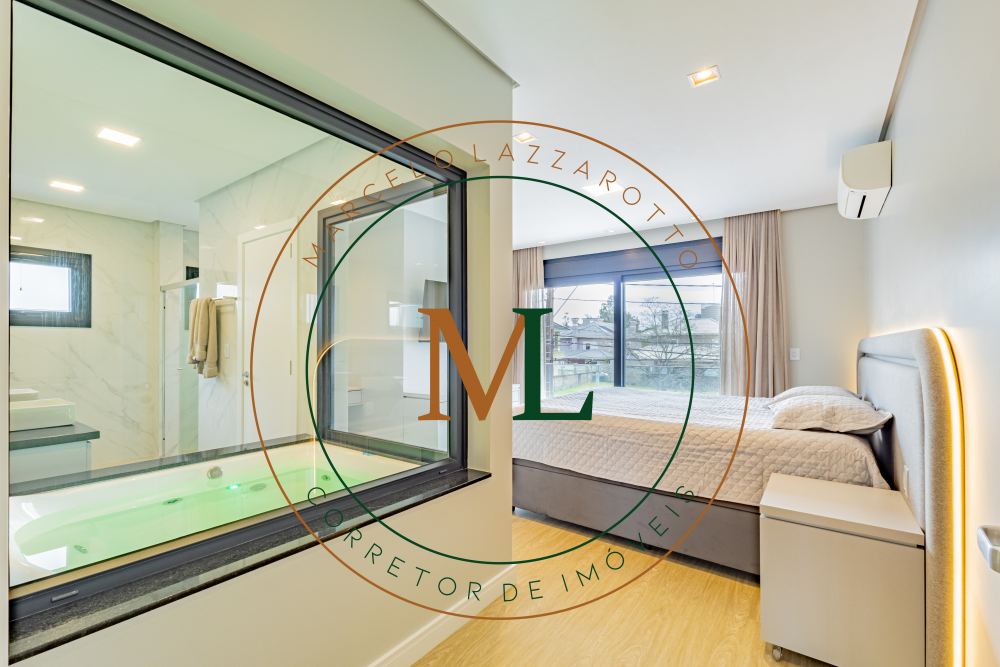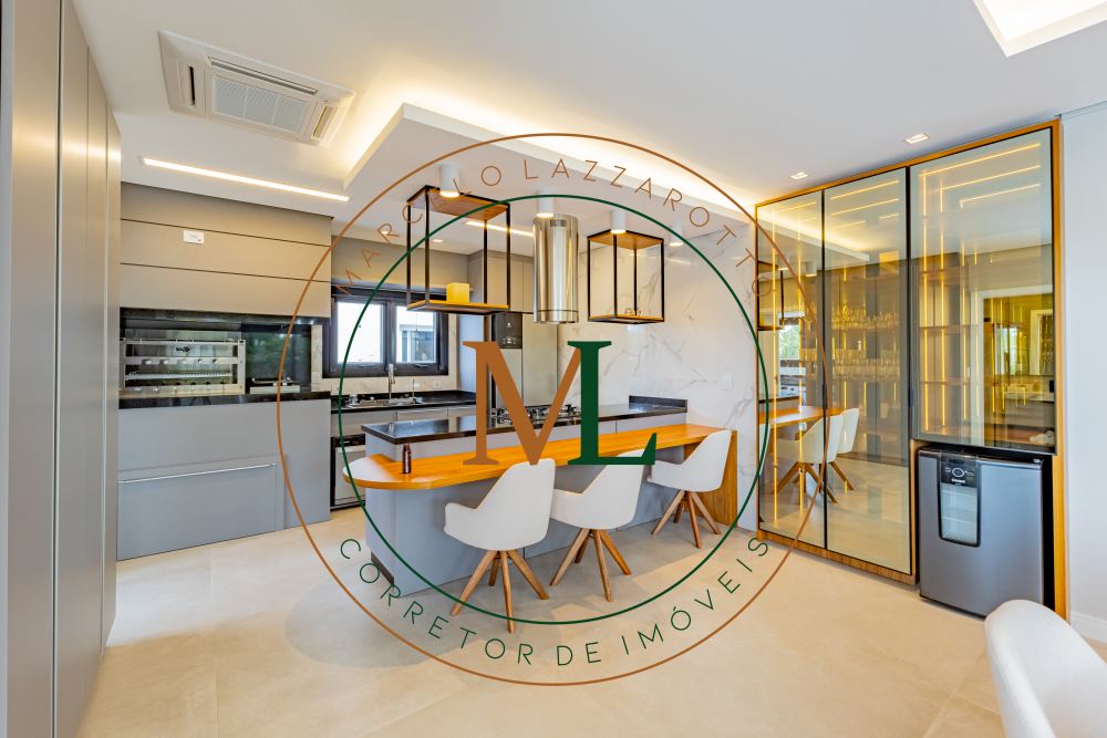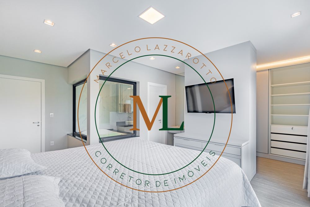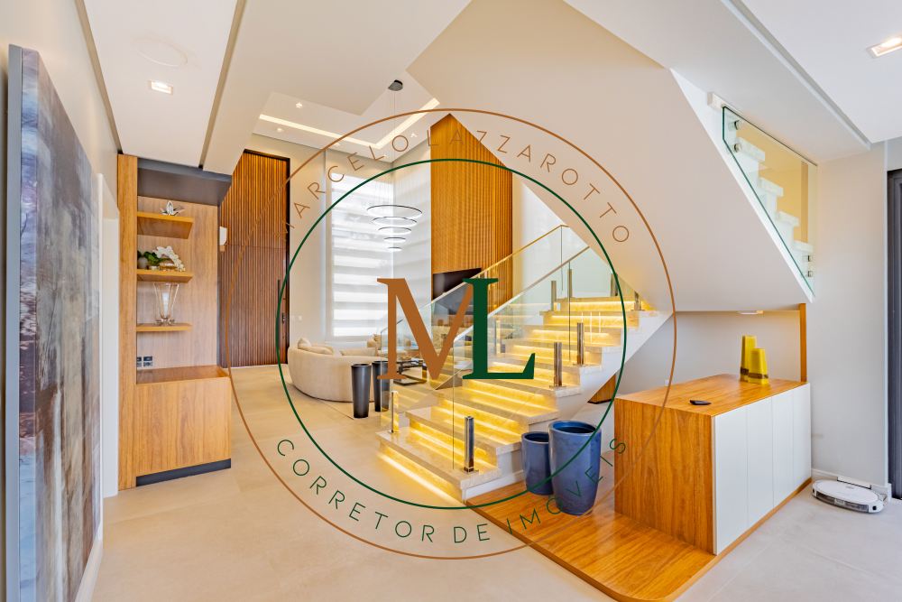 Sobrado em alto padrão, área terreno: 450m² (15 x 30), frente norte, área total da edificação: 350 m², 04 (quatro) suítes independentes (03 suítes com closet, banheira de hidro e sacada), suíte no térreo com closet, mezanino, cozinha integrada com sala de jantar, sala de estar/TV com lareira, banheiro social, lavanderia, churrasqueira. O Imóvel será entregue da seguinte forma, com cozinha equipada com side by side, cervejeira, fornos embutidos, fogão cooktop, máquina de lavar louça e exaustor, móveis sob medida nas suítes, cozinha, lavanderia, banheiros e salas, som ambiente na área social, churrasqueira a carvão com grelha elevatória e cooktop, todos os ambientes climatizados, lavanderia com 2 aquecedores de passagem e máquina lava/seca, área social integrada, Porcelanatos, louças e metais de alto padrão, garagem coberta para dois veículos grandes com tomada para carro elétrico, lareira interna (opcional lareira ecológica), piscina com pastilha e com aquecimento, jardim com lareira externa, esquadrias em PVC preto com persianas automatizadas e geração energia fotovoltaica.