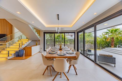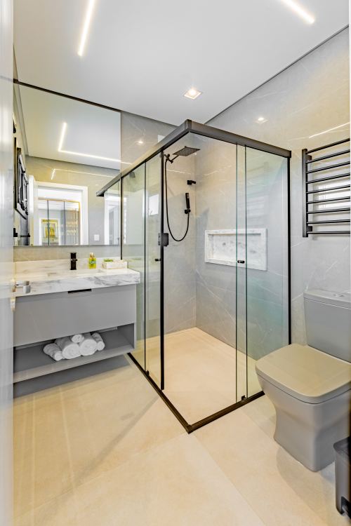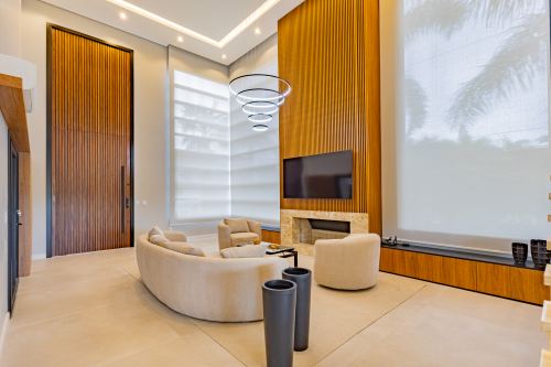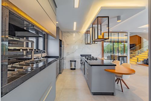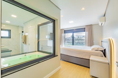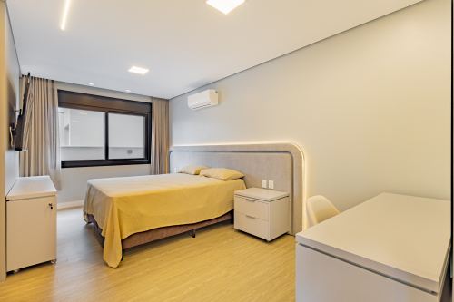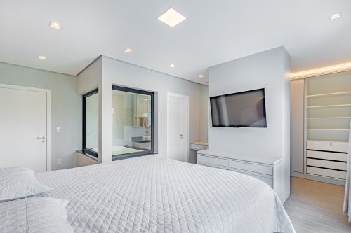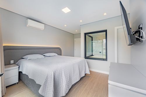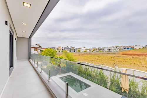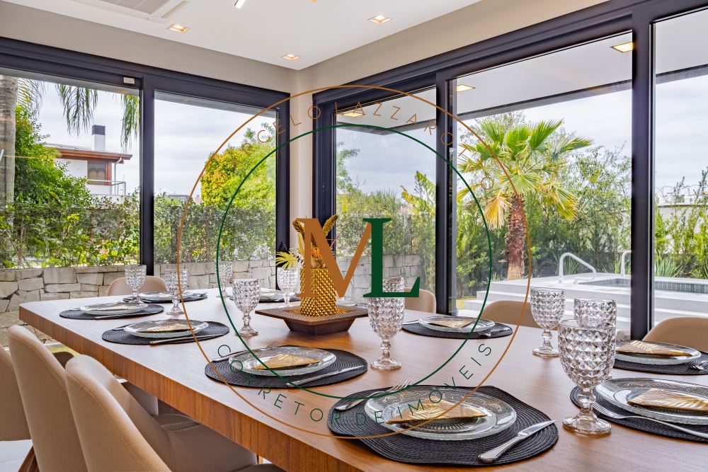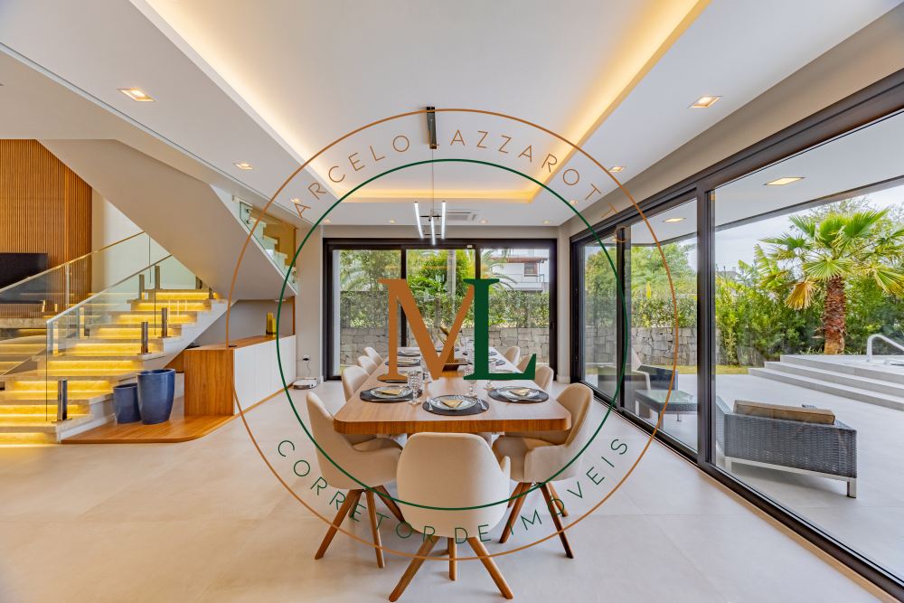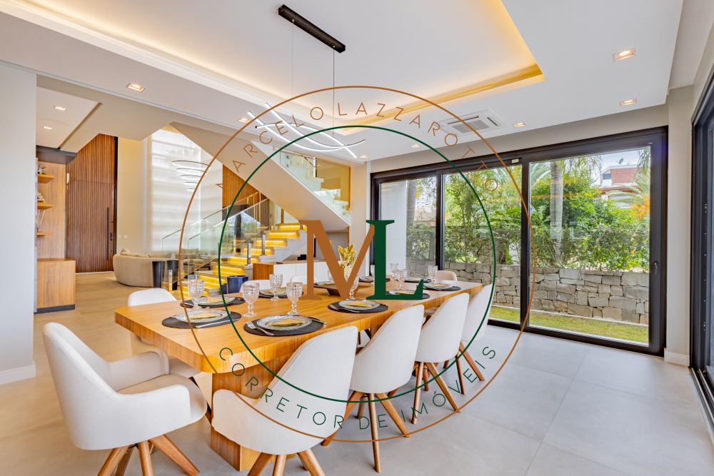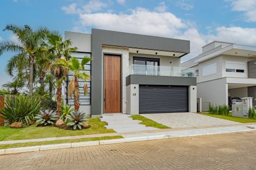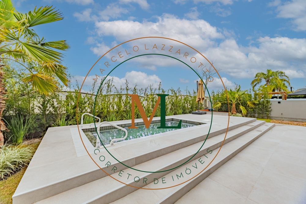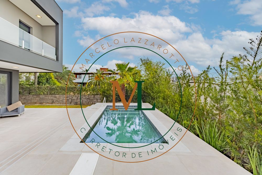 Sobrado em alto padrão, área terreno: 450m² (15 x 30), frente norte, área total da edificação: 350 m², 04 (quatro) suítes independentes (03 suítes com closet, banheira de hidro e sacada), suíte no térreo com closet, mezanino, cozinha integrada com sala de jantar, sala de estar/TV com lareira, banheiro social, lavanderia, churrasqueira. O Imóvel será entregue da seguinte forma, com cozinha equipada com side by side, cervejeira, fornos embutidos, fogão cooktop, máquina de lavar louça e exaustor, móveis sob medida nas suítes, cozinha, lavanderia, banheiros e salas, som ambiente na área social, churrasqueira a carvão com grelha elevatória e cooktop, todos os ambientes climatizados, lavanderia com 2 aquecedores de passagem e máquina lava/seca, área social integrada, Porcelanatos, louças e metais de alto padrão, garagem coberta para dois veículos grandes com tomada para carro elétrico, lareira interna (opcional lareira ecológica), piscina com pastilha e com aquecimento, jardim com lareira externa, esquadrias em PVC preto com persianas automatizadas e geração energia fotovoltaica.